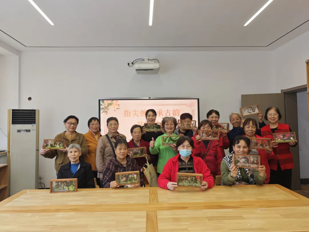 本次活动不仅带来了精彩的非遗缠花手工体验,还增设了传统插花环节。胡老师亲自演示选线、绕线技巧,手把手指导大家解决造型松散等问题。传统插花区,银龄朋友们根据自己的喜好在相框中进行插花,定格下此刻的美好。大家沉浸式感受传统文化与创意碰撞的魅力,在丝缕缠绕的匠心、花影定格的浪漫与墨香漫溢的雅致间,既体验了手工乐趣,也让重阳佳节的温馨氛围愈发浓厚。